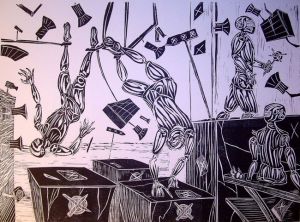 die holz- & linolschnitte nach josé saramago entstanden nach seinem roman: "die stadt der blinden".