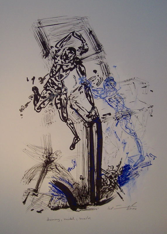 selfportrait with donkey, dummyassistent, building site & disturbance screen