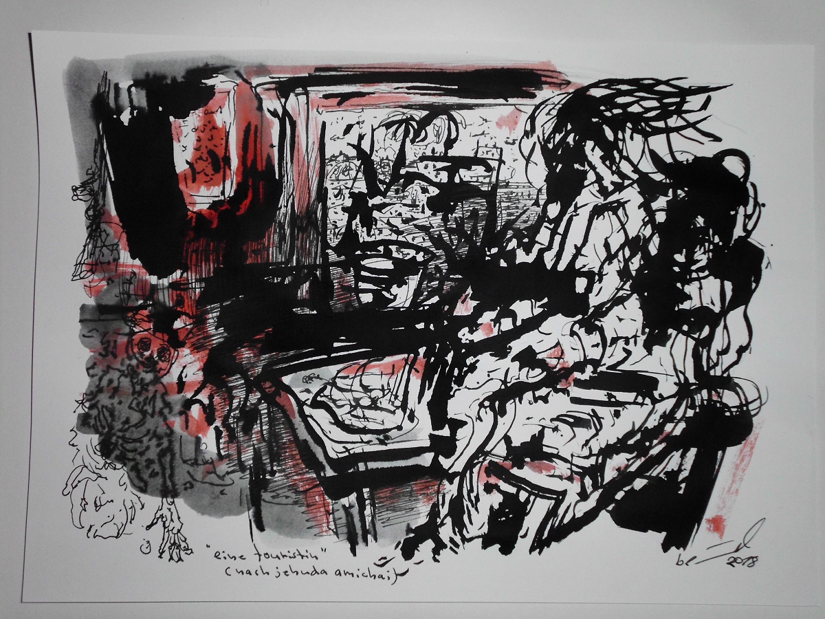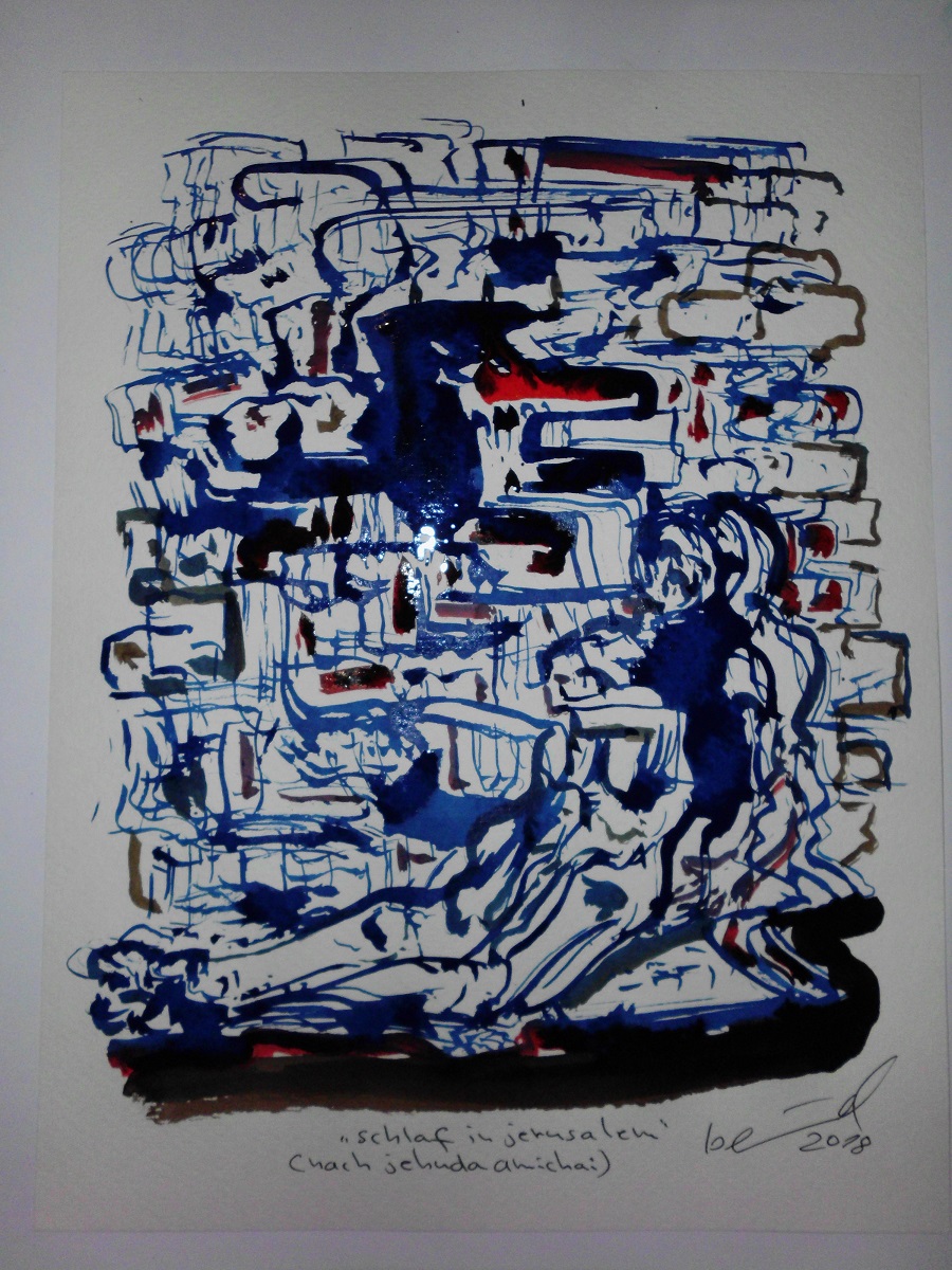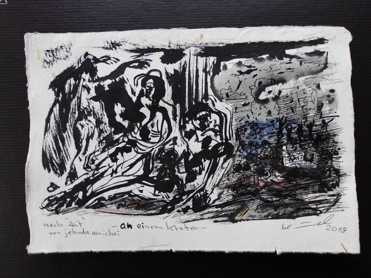 eine auswahl mischtechniken, graphiken, tuschezeichnungen, linol- & vinylschnitte, etc., die nach jehuda amichais gedichte, erzählungen & seinem roman "nicht von jetzt, nicht von hier" entstanden.