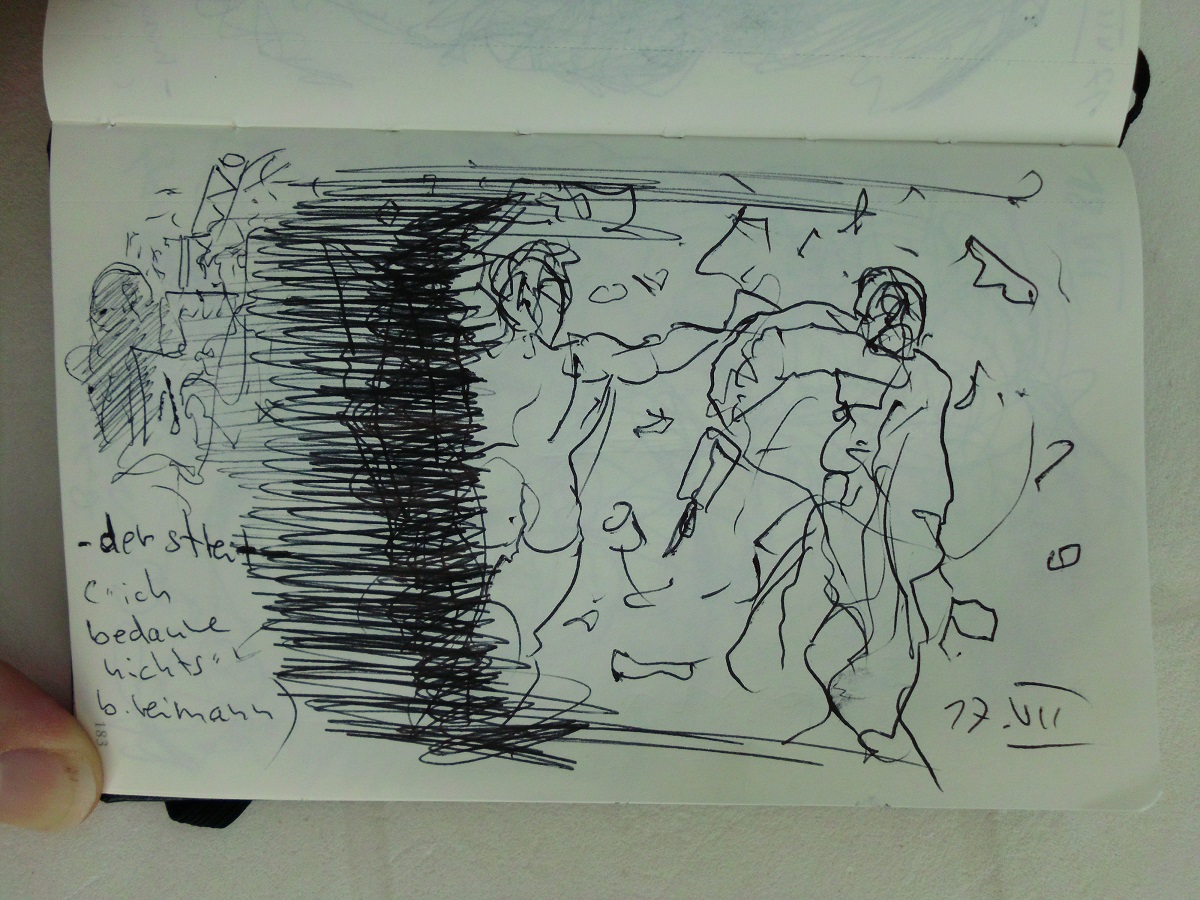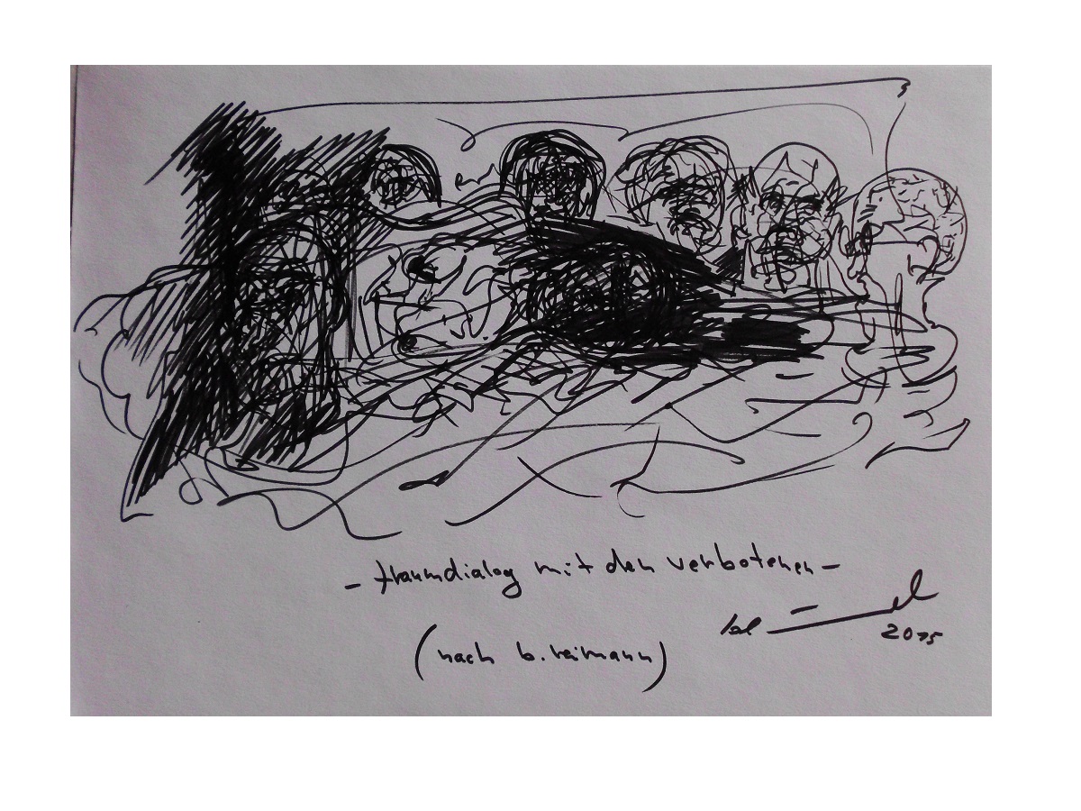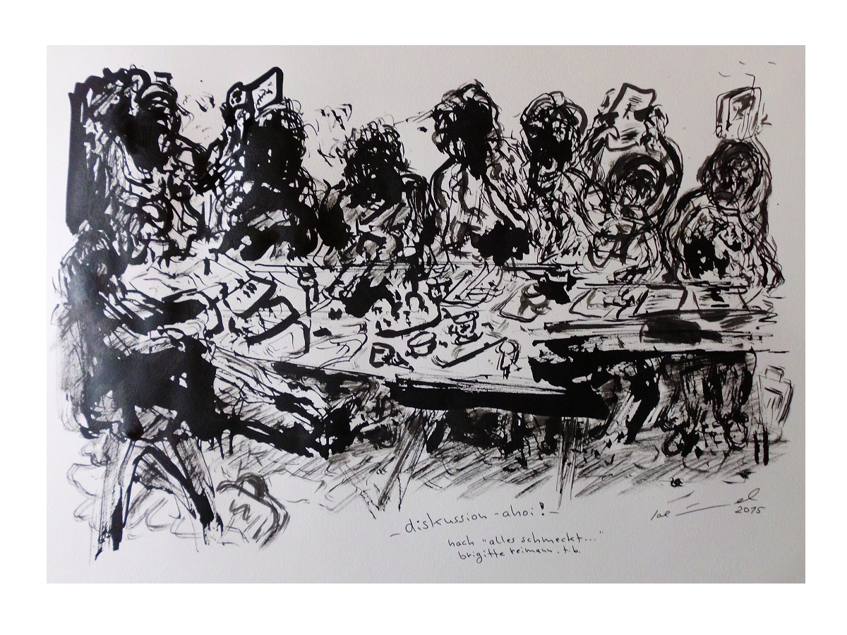 eine auswahl skizzen, zeichnungen, illustrationen sowie mischtechniken nach: "ich bedaure nichts, tagebücher 1955 - 1963, "alles schmeckt nach abschied, tagebücher 1964 - 1970" sowie "aber wir schaffen´s, verlaß dich drauf!", briefe an eine freundin im westen.